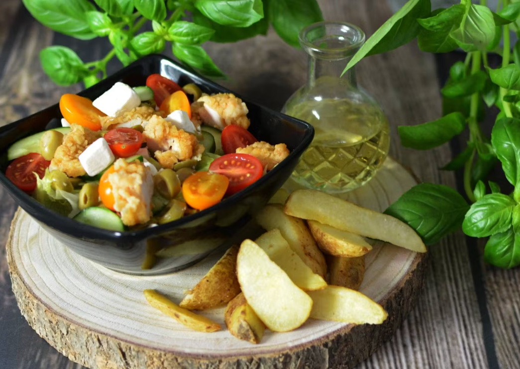 Menu naszej restauracji opiera się przede wszystkim na wysokiej jakości, świeżych składnikach, które stanowią fundament naszej karty. W trosce o zdrowie naszych klientów, zdecydowaliśmy się odrzucić w największym możliwym stopniu produkty pochodzące z marketów. Zamiast tego, mamy swoich sprawdzonych i zaufanych dostawców. Nasza restauracja opiera się głównie na soczystych kawałkach chrupiącego kurczaka. Mięso dostarczane jest do nas codziennie rano, dlatego jedząc u nas, masz pewność, że jedzenie jest świeże! Jesteśmy jedynym lokalem, który serwuje kebaba w bułce z kawałkami piersi z kurczaka w chrupiącej panierce, a sama bułka sprowadzana jest z lokalnej piekarni. Kolejnym przykładem są nasze burgery - świeże warzywa, bułka z lokalnej piekarni, ulubiony sos i to co najważniejsze, czyli 100% mięso wołowe. Wszystko po to, abyście mogli cieszyć się jak najlepszym smakiem. Oprócz tego, znajdziesz u nas takie dania jak: sałatki ze świeżymi warzywami, desery, frytki, krążki cebulowe, dania dnia, różnego rodzaju kanapki, zestawy, domowe obiady, dania dla dzieci, świeże ryby, krewetki, a nawet dania vege.